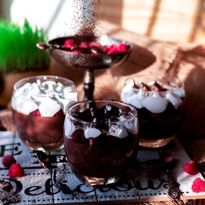 От настолько нежный и гомогенный, все крупинки исчезают при его приготовлении, что невозможно понять, что этот десерт содержит творог. Можно варьировать с подачей этого десерта: добавить малину, добавить орешки или просто сверху украсить меренгой и какао.