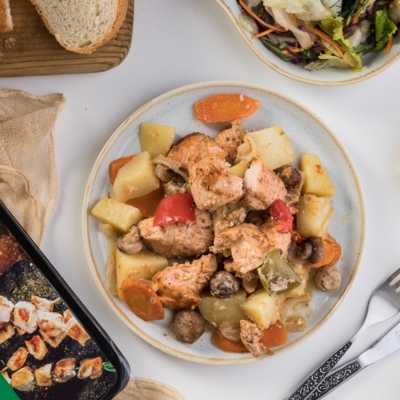Мясо запекается вместе с овощами, получается очень сочным, мягким и ароматным. Плюс в том, что гарнир и мясо готовятся одновременно. Овощи для этого блюда можно выбирать по сезону и по собственному вкусу.