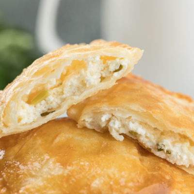 Слойки получаются вкусными и сытными, с большим количеством нежной начинки из творога и сыра.