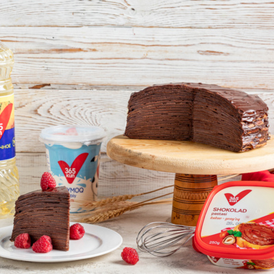При подаче можно украсить ягодами или посыпать сахарной пудрой. Такой торт можно приготовить как для семейного чаепития, так и для приема гостей.