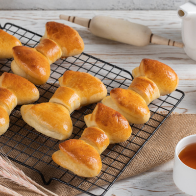 Смазать печенье смесью желтка с водой с помощью силиконовой кисточки .