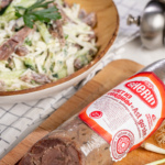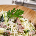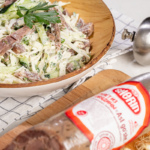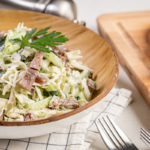 Простой и свежий салат из капусты с ароматным мясным рулетом и огурцом идеально подходит как для праздничного застолья, так и для обычного обеда. Можно экспериментировать с заправкой, добавив сметану или йогурт вместо майонеза.