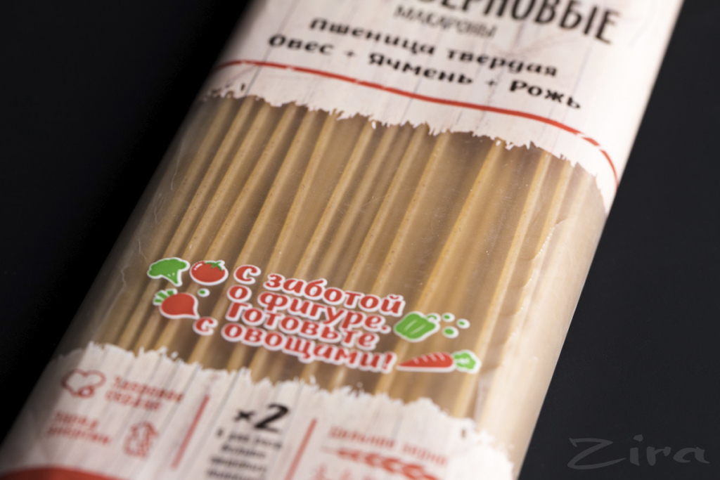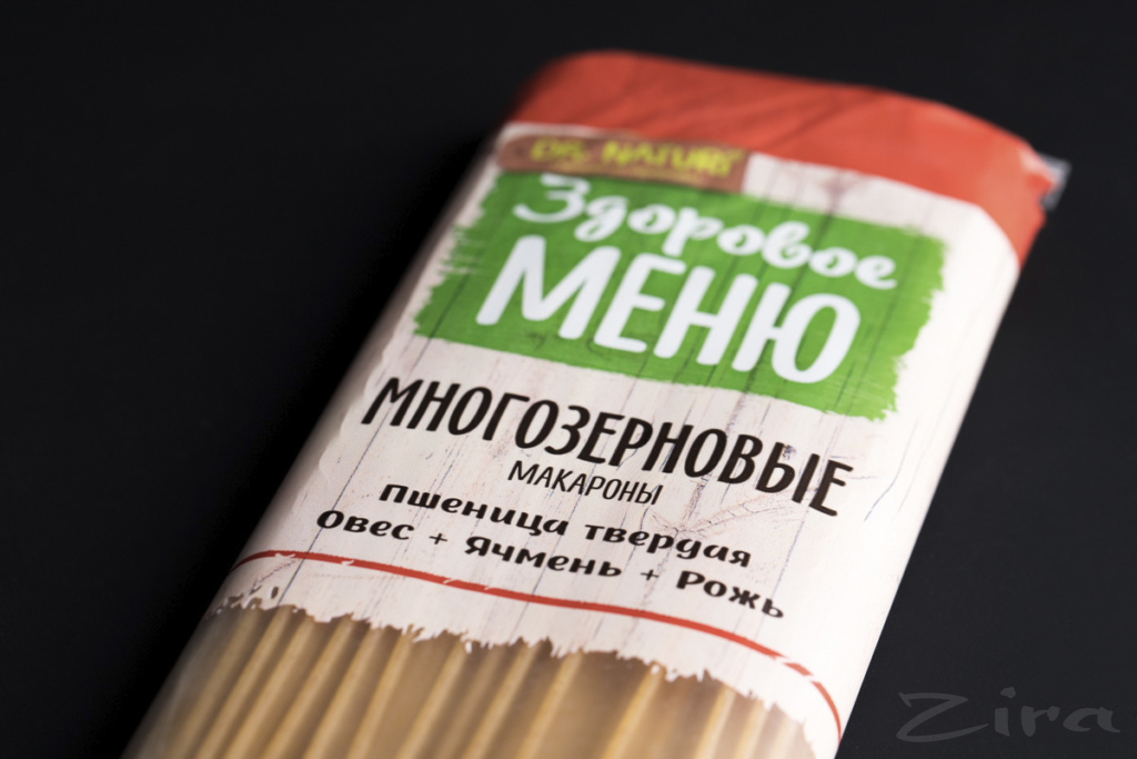 Мы выбрали многозерновые макароны, в составе которых твердая пшеница, овес, ячмень и рожь.