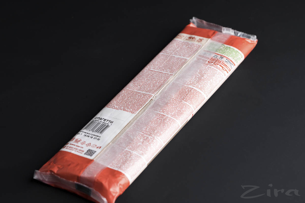 Согласно заявлениям с упаковки, многозерновые макароны призваны позаботиться о фигуре и наделены пищевыми волокнами в два раза больше, чем в других аналогах. Вид спагетти несколько отличается от привычного цветового решения — они однозначно темнее оттенком, но, вероятно, причина тому твердая пшеница, овес, рожь и ячмень в составе.