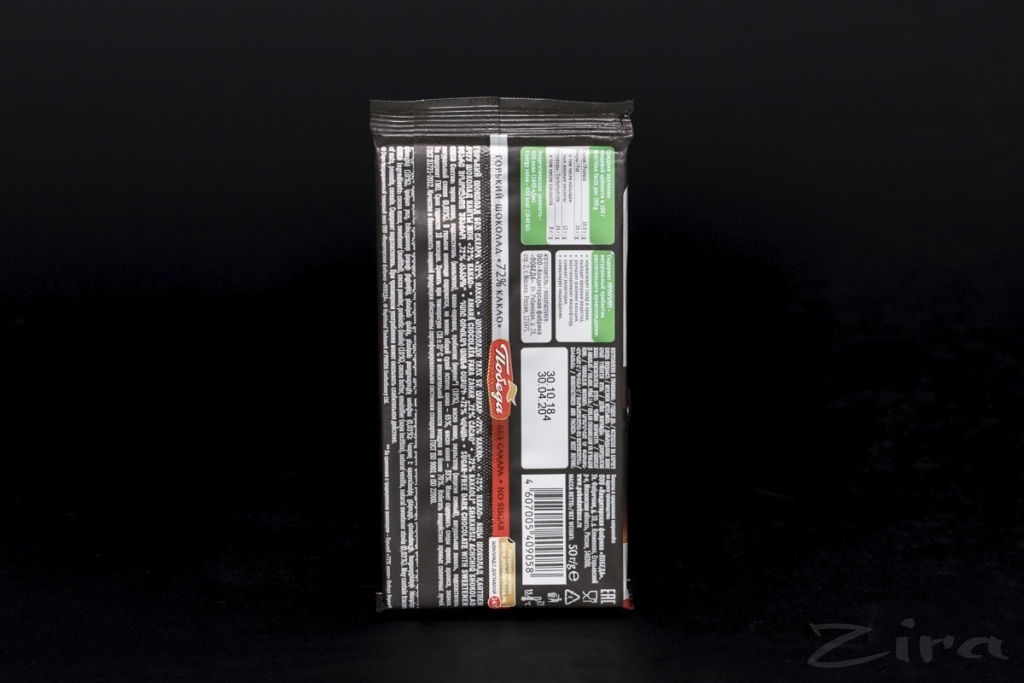 Расфасован он в плитки по 100 г — темный и молочный и по 50 г — горький.