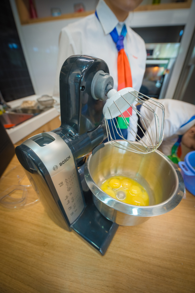 “Пока мы с вами жарим тосты, рядом стоит и томится молоко. Убежавшее молоко — страх любой хозяйки. Но благодаря индукционной плите Bosch и точному контролю температуры оно никуда не убежит и не выкипит. На литр молока добавим специи: 8 звездочек, щепотку ванили, корицы и муската. Если есть палочка ванили, то еще лучше. Далее нам нужно взбить 8 желтков и 2 ложки сахара, потом добавим сахар по вкусу. Взбивать проще в чаше кухонного комбайна”, — продолжил Абдулла Ахмедов.