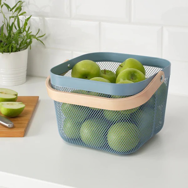 Корзину можно использовать как для хранения овощей и фруктов, так и подойти нестандартно и хранить в ней вещи в прихожей (аксессуары), в спальне или в детской (игрушки, книжки).