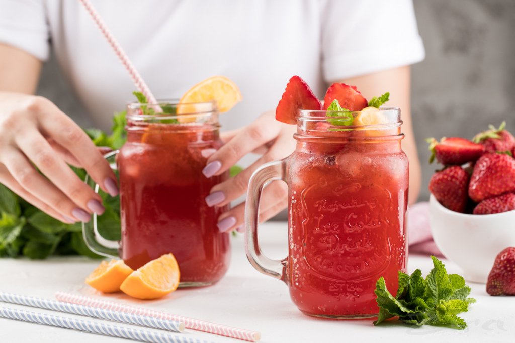 Клубнично-мятный лимонад