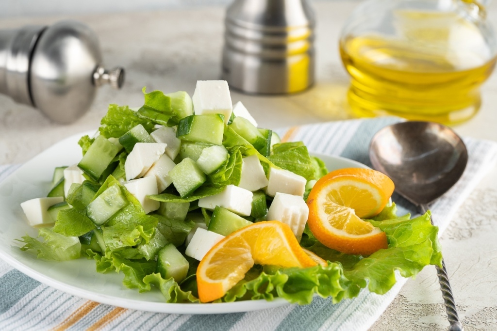 Салат — Свежий салат с огурцами и брынзой