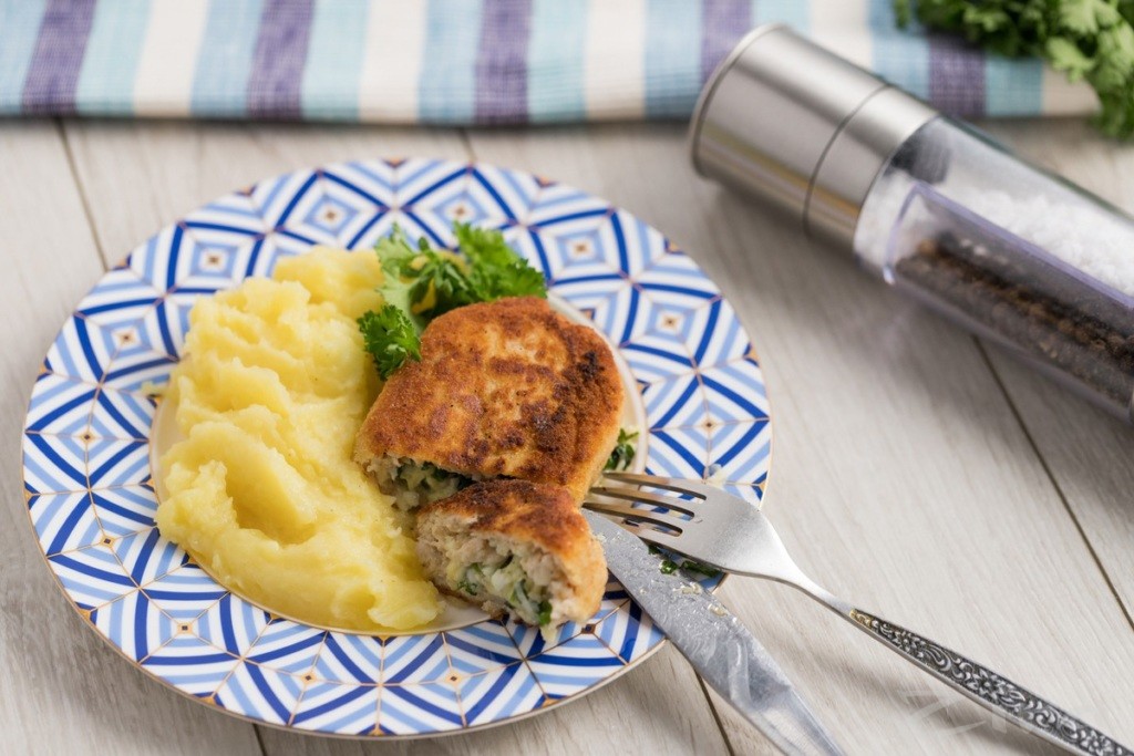 Ужин- Куриные котлеты с сырной начинкой