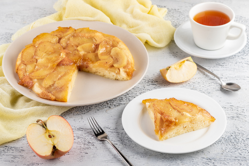 К чаю- Яблочный пирог с карамелью на сковороде