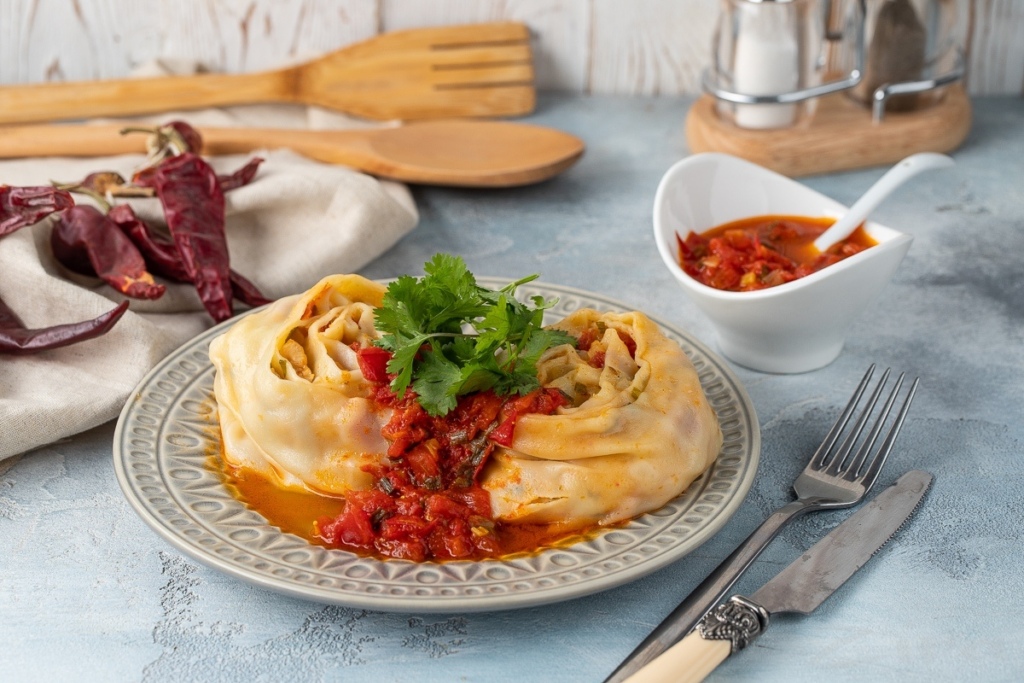 Завтрак- Турецкая лепешка гезлеме с сыром и брынзой