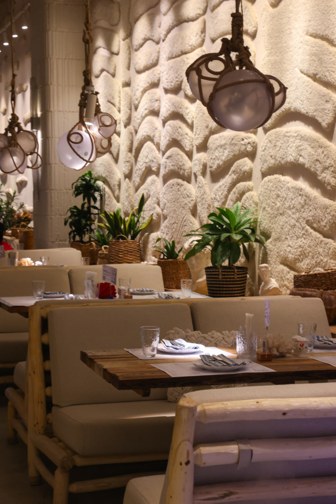 Kaspiyka напоминает о побережье, хотя за окном город. Тут все построено вокруг морской темы: белый песок на полу, сетки вместо люстр, акценты из канатов и морских узлов. В меню большой выбор рыбы и морепродуктов, которые можно не только попробовать в заведении, но и приобрести в рыбной лавке. Ощущение, что море всегда поблизости.