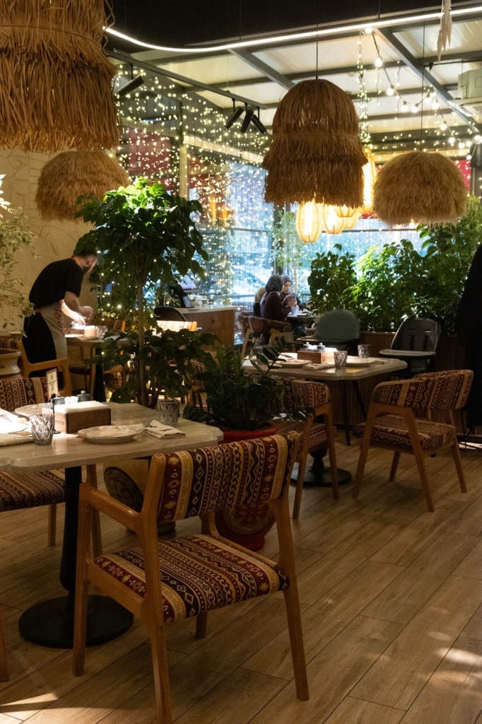 Pro.Хинкали — еще один проект Novikov Group. В интерьере светильники, напоминающие папахи, диваны с грузинскими орнаментами и много зелени. Войдешь — и сразу захватывает кавказская музыка, внутри громко, весело и вкусно. Все это создает ощущение гостеприимного грузинского дома, где любят большие компании и щедро накрытые столы.
