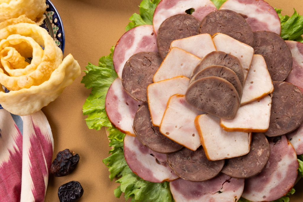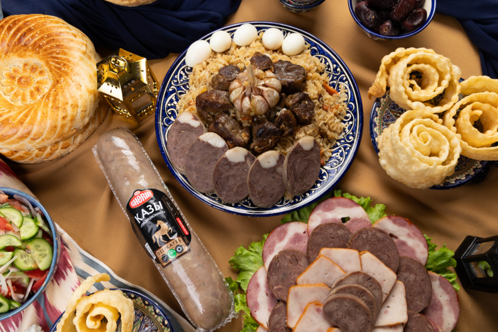 Но на этом мясные угощения не заканчиваются. К праздничной трапезе плов можно дополнить мясной нарезкой из деликатесов Sherin — мясных рулетов, копченостей и других изделий. Такая подача делает стол еще более щедрым и разнообразным.