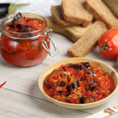 А еще прелесть этого рецепта в том, что можно закатывать этот салат из баклажанов на зиму маленькими порциями.