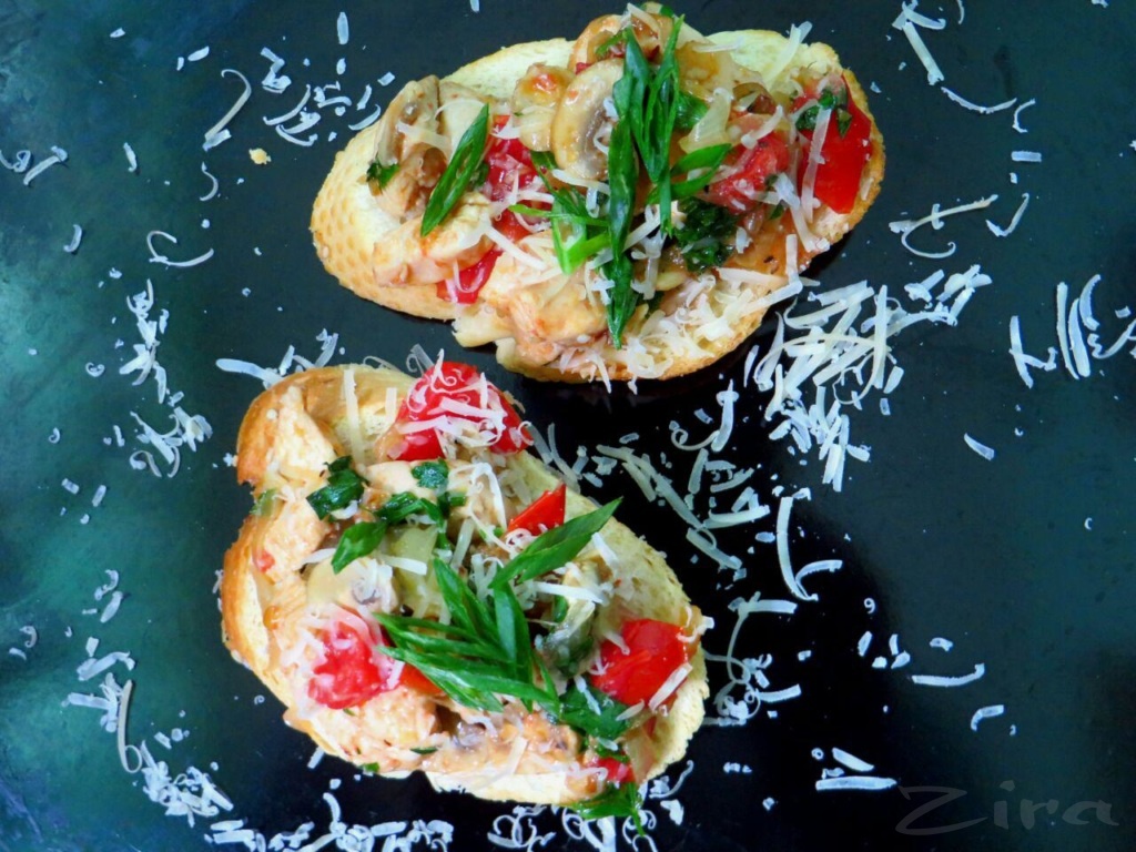 Брускетта с курицей и грибами