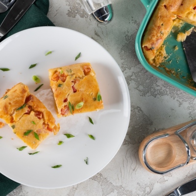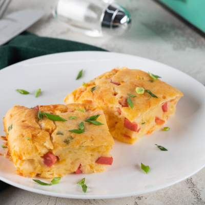 Этот быстрый пирог удобно готовить к завтраку, времени на него немного уходит, а получается очень вкусно. Отличный вариант простого, но очень сытного пирога из разряда все смешал и в духовку.