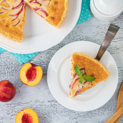 Цветаевский пирог — один из самых вкусных и простых в приготовлении пирогов, которые нам известны. За основу мы взяли классический вариант, заменив лишь яблоки на персики.
