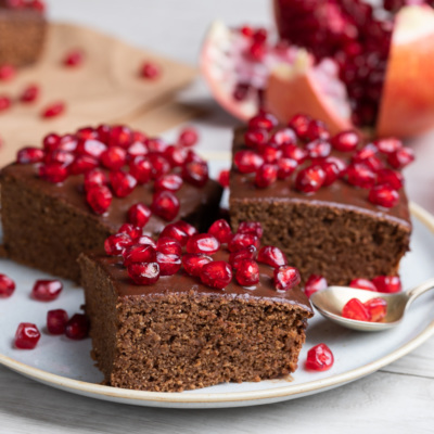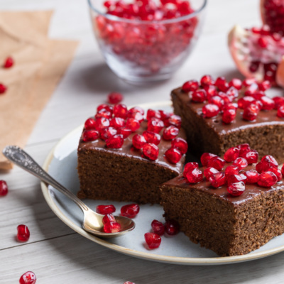 Остывший брауни смазать глазурью. По желанию украсить зернами граната.