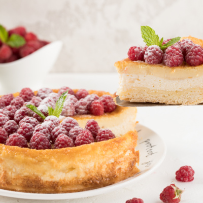 Этот торт не только сочетает в себе интересные ингредиенты, но также имеет потрясающую нежную текстуру. Прослойки из творога и ванильного пудинга прекрасно гармонируют с песочной основой.