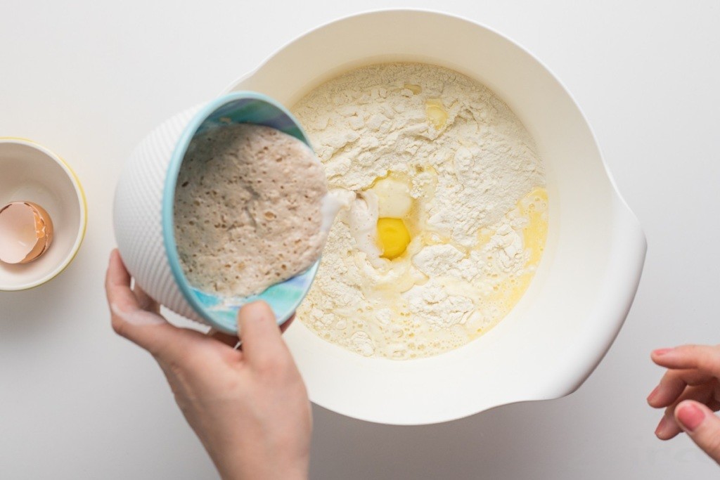 Через час необходимо обмять тесто руками, после этого оставить подниматься дальше.