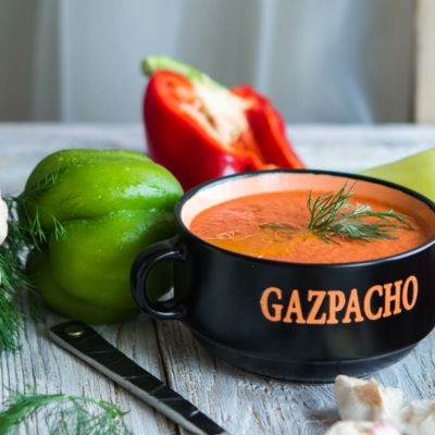 В жаркую погоду только освежающий и сытный гаспачо утоляет голод и жажду одновременно, не перегружая желудок и обеспечивая организм необходимой энергией. Приготовьте этот легкий средиземноморский суп для всей семьи!