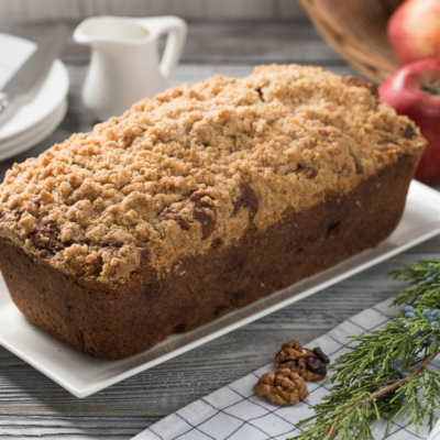 Яблочная выпечка — фаворит на любой кухне. Предлагаем приготовить очень вкусный, ароматный кекс с яблоками и орехами с ноткой корицы и присыпкой из штрейзеля.