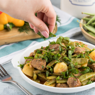 Говядина тушеная с зеленой фасолью