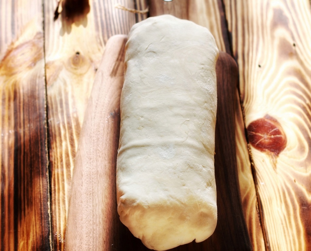 Обернуть мясо сначала лавашом, а затем слоеным тестом.