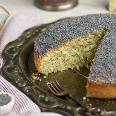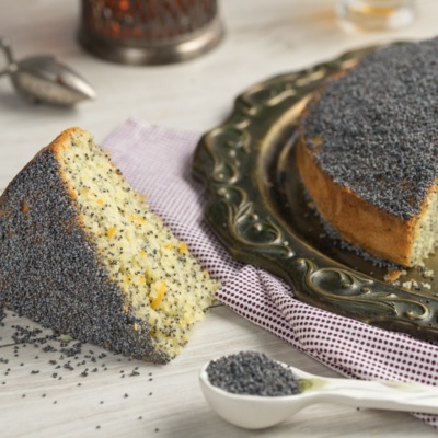 Для украшения смазать кисточкой с сиропом верх кекса и посыпать тонким слоем мака, который сразу же прилипнет.