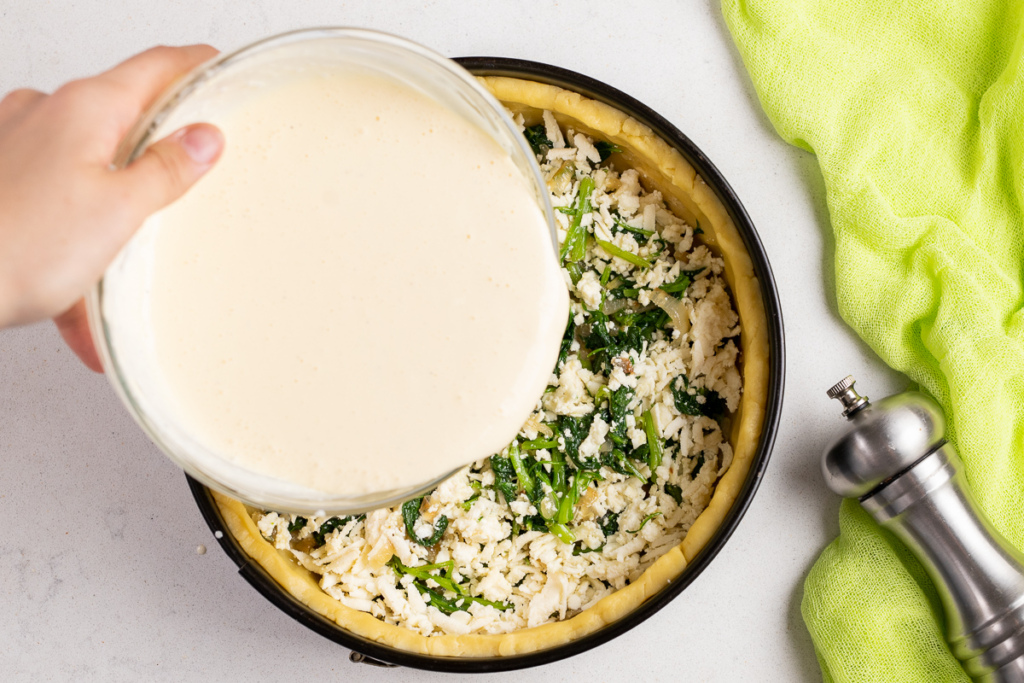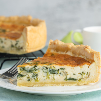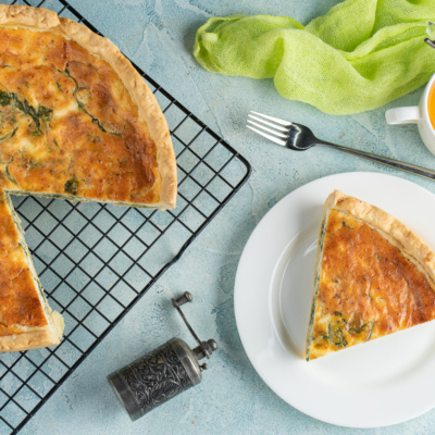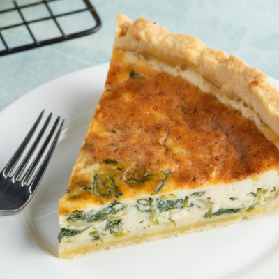 Киш — это открытый пирог из песочного теста с разнообразной начинкой. Мы предлагаем вариант с легкой начинкой из шпината и брынзы, отличный вариант как для перекуса, так и полноценного приёма пищи.