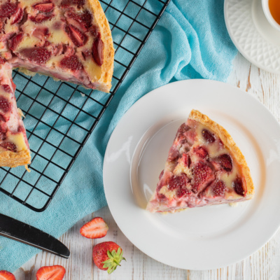 Этот пирог обязательно станет хитом ягодного сезона. Тонкое песочное тесто, нежная сметанная крем-заливка и много-много летней ароматной клубники.