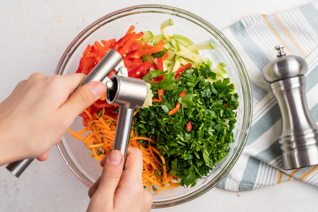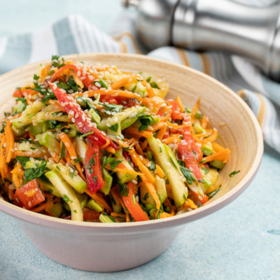 Предлагаем приготовить вкусный и пикантный овощной салат из моркови и кабачков по-корейски. Кабачки придают салату особую сочность, а морковь — яркий вкус.