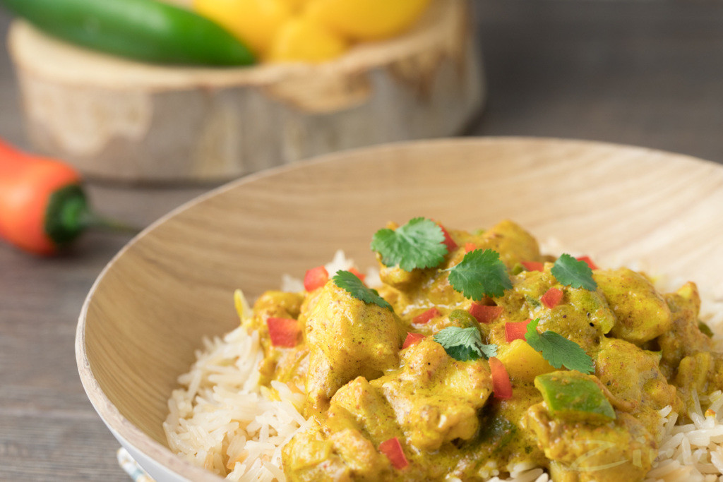 Подавать курицу карри лучше всего с рассыпчатым рисом.