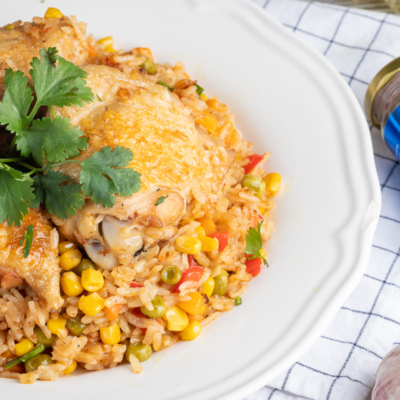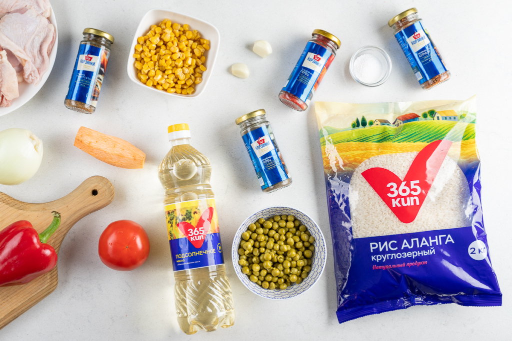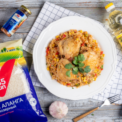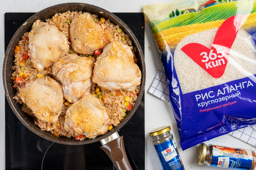 Делимся вкусным и простым блюдом, которое готовится в одной сковороде. Удачный рецепт, поскольку вместе с сочными куриными бёдрышками сразу готовится и гарнир к ним в виде рассыпчатого риса с овощами. Рис получается невероятно ароматным, ярким и насыщенным за счёт кукурузы, горошка, сладкого перца, моркови и помидоров.