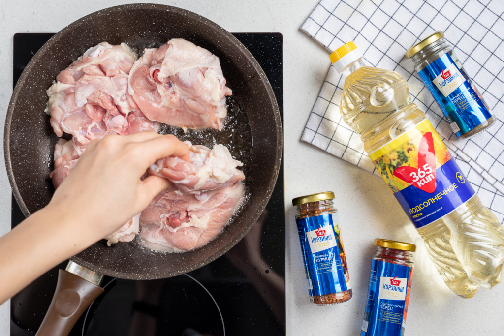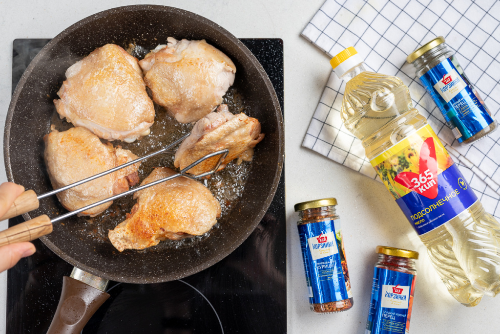 Куриные бёдра промыть и обсушить бумажным полотенцем.