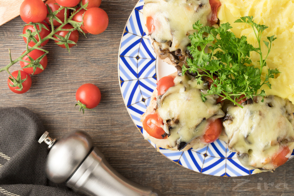 Куриная отбивная с грибами и сыром