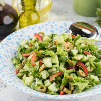 Добавьте сок лимона и оливковое масло, хорошо перемешайте и немного посолите.