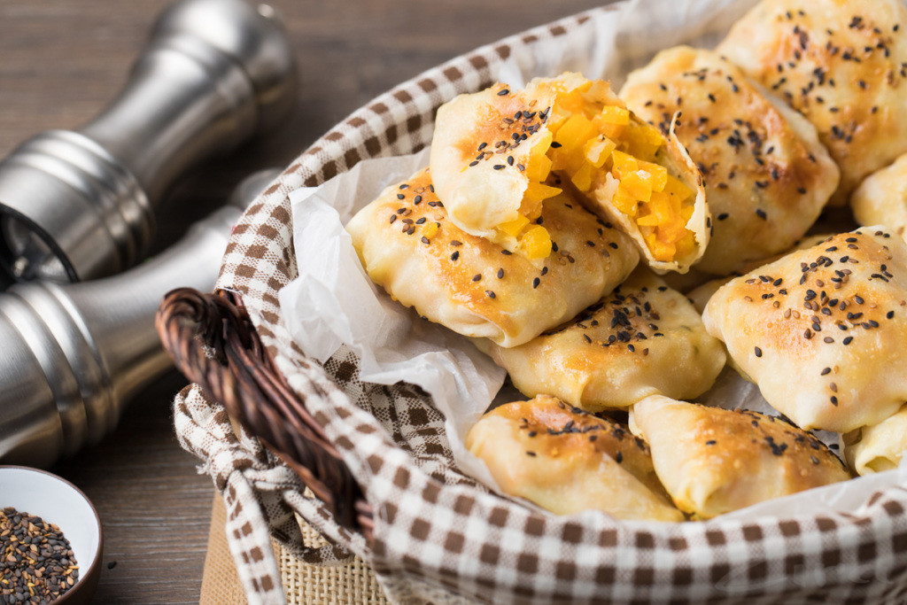 В качестве начинки мы взяли тыкву и ничуть не пожалели. Получились румяные ароматные конвертики, которые быстро готовятся и так же быстро исчезают с тарелок.
