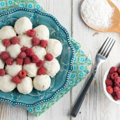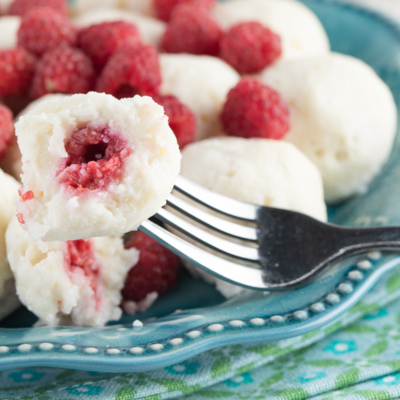 Ленивые вареники с малиной готовятся очень просто и очень быстро. Они могут служить полноценным завтраком для всей семьи, или вкусным летним десертом.