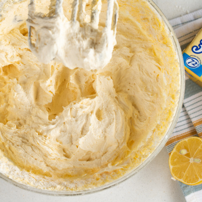 Добавить лимонный сок, щепотку соли и цедру одного лимона. Взбить миксером до получения однородной масляной массы.