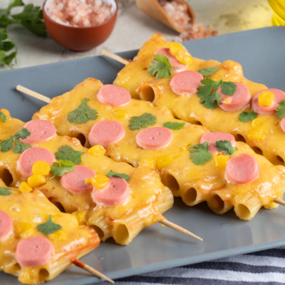 Сегодня приготовим аппетитное блюдо — макароны на шпажках в духовке. Макароны получаются невероятно вкусными и сытными. Для этого блюда подойдут крупные макаронные изделия, которые можно насадить на шпажки.