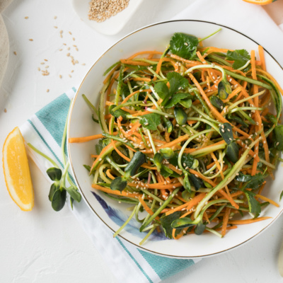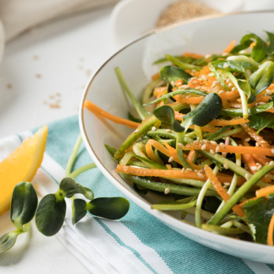 Самый простой способ использовать микрозелень – добавить её в салат. Предлагаем приготовить полезный овощной салат с молодыми побегами подсолнечника.