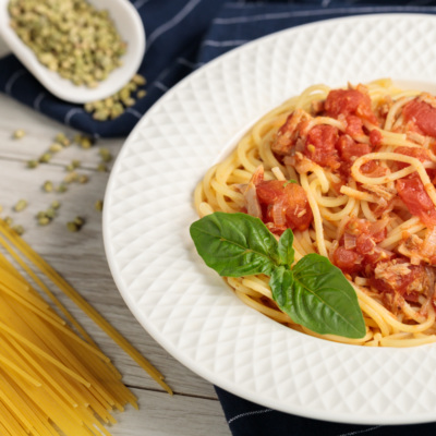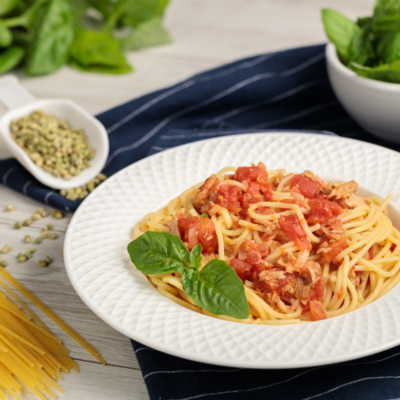Прекрасный итальянский рецепт пасты с тунцом в томатном соусе. Макароны с соусом всегда готовятся довольно быстро и просто, поэтому для будничного обеда такой вариант может очень пригодиться.