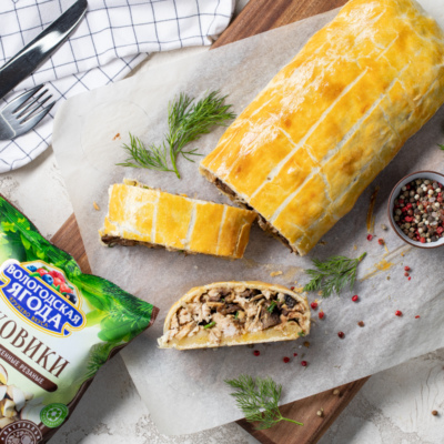 Самый ароматный и насыщенный пирог получится из настоящих лесных грибов, сейчас такие появились на полках крупных супермаркетов.