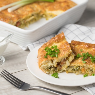 Пирог с молодой капустой и колбасками — очень простой и домашний. Его по достоинству оценят те, кто любит большое количество начинки и немного теста.