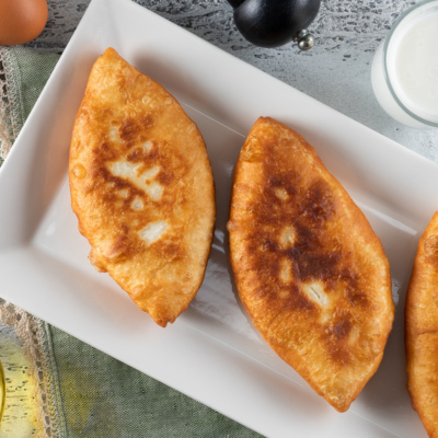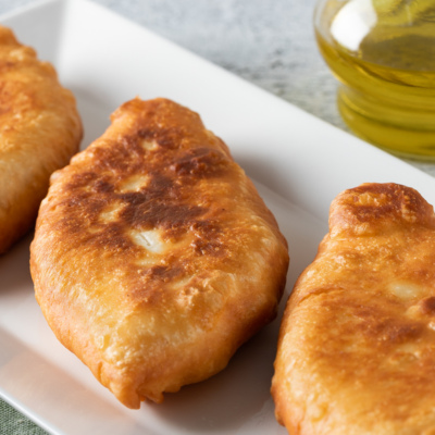 Жарить пирожки с двух сторон на сковородке с хорошо разогретым растительным маслом.