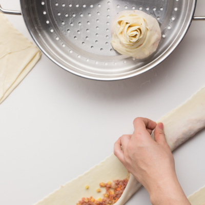 Гуль-ханум от обычного урама-ханум отличается лишь вариантом формовки, а тесто и начинка те же.