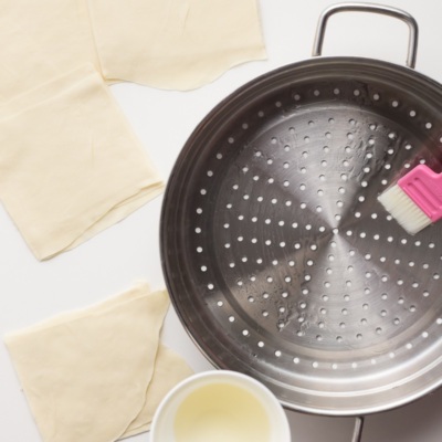 Как только вода в мантышнице закипит - поставить все листы сверху и закрыть крышкой.